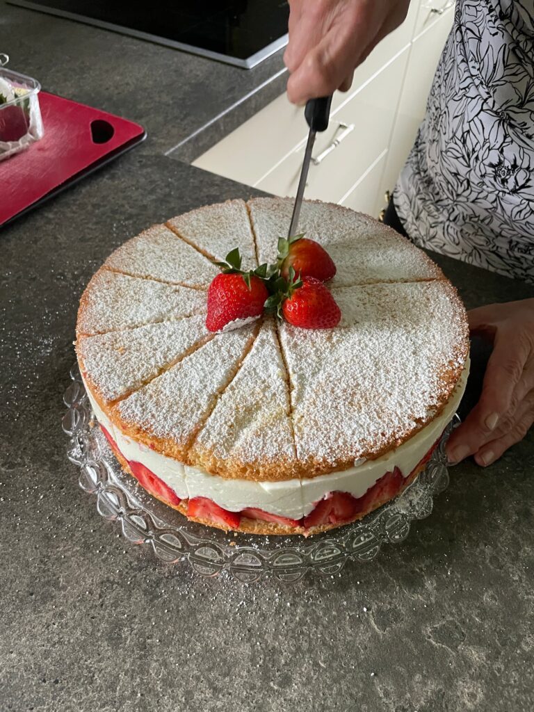 週末に義弟家族もやって来るというので直径26cmの苺のヨーグルトムースケーキを焼いてくれました。